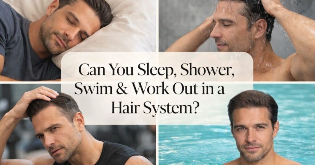 Here’s the real answer: you can do everything. Sleep in it. Shower daily. Swim. Work out hard. Travel. Basically live your normal life. A quality hair system that is properly installed can hold up through all of it.
